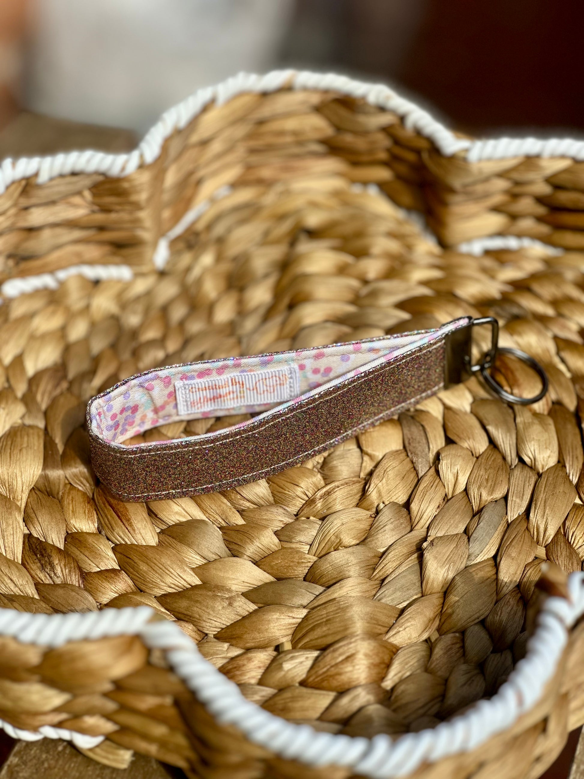 Made in cotton, polyester, glitter faux leather. Lovely as key charms or simply as a stylish companion to bags.