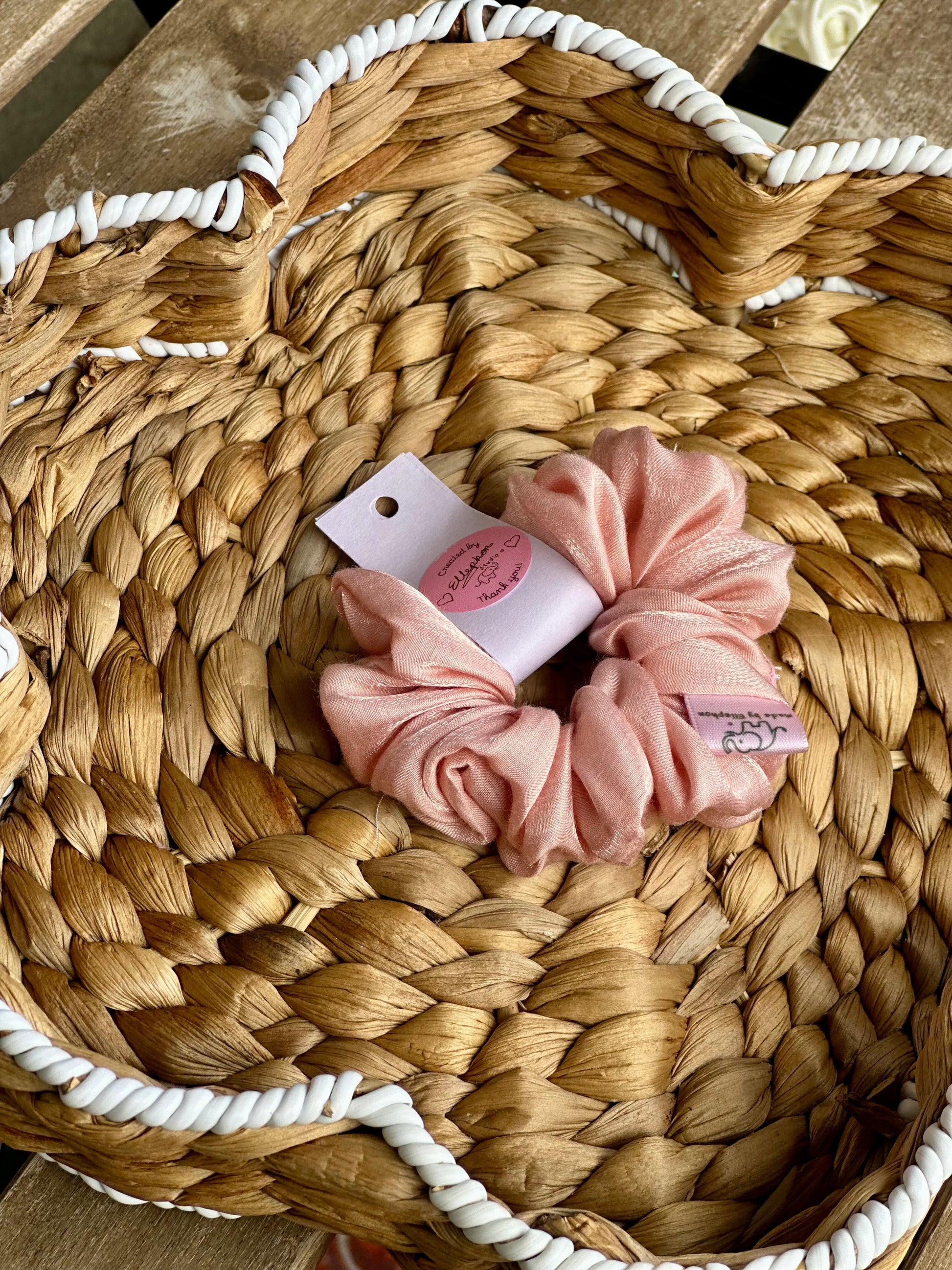 Made of shinny satin and braided elastic. Small size, diameter 11 cm, mini 9 cm.